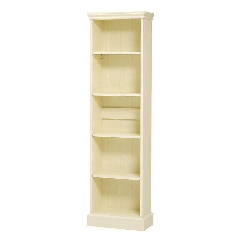 Regał biały stylowy Duken jest niezwykle ciekawym i bardzo funkcjonalnym meblem do wnętrz o niewielkiej powierzchni użytkowej, w których najważniejsze bywa ekonomiczne wykorzystanie przestrzeni. Otwarta konstrukcja jest bardzo praktyczna nie tylko z uwagi na swoje rozmiary, ale też z powodu braku drzwi, które zazwyczaj wymagają zapewnienia miejsca do ich otwierania. Mebel stworzony został w stylu łączącym w sobie cechy rustykalne i skandynawskie, dzięki czemu doskonale zaprezentuje się we wnętrzach w klimacie vintage, akcentując nawiązanie do tradycji wzorniczych przeszłości. W kompozycji wyraźnie zaznacza się tradycyjna forma nawiązująca kształtem do prostych mebli rustykalnych wykonywanych metodą chałupniczą na potrzeby dawnych wiejskich domów. Uroku i zarazem stylowego realizmu dodaje kompozycji tylna ściana regału, tworząca układ pionowych desek – z jednej strony dekoracyjna, gwarantująca ciekawe tło dla ekspozycji, z drugiej podkreślająca wykonanie regału z litego drewna. Urozmaiceniem jest też dodatkowa szeroka listwa w połowie wysokości tylnej ściany. Duken to niezbyt wysoki i wąski mebel mieszczący pięć półek do ustawiania na nich książek, zabawek czy dekoracyjnych bibelotów. To mebel idealny zarówno do niewielkiego salonu, gabinetu, jak i do pokoju dziecięcego.