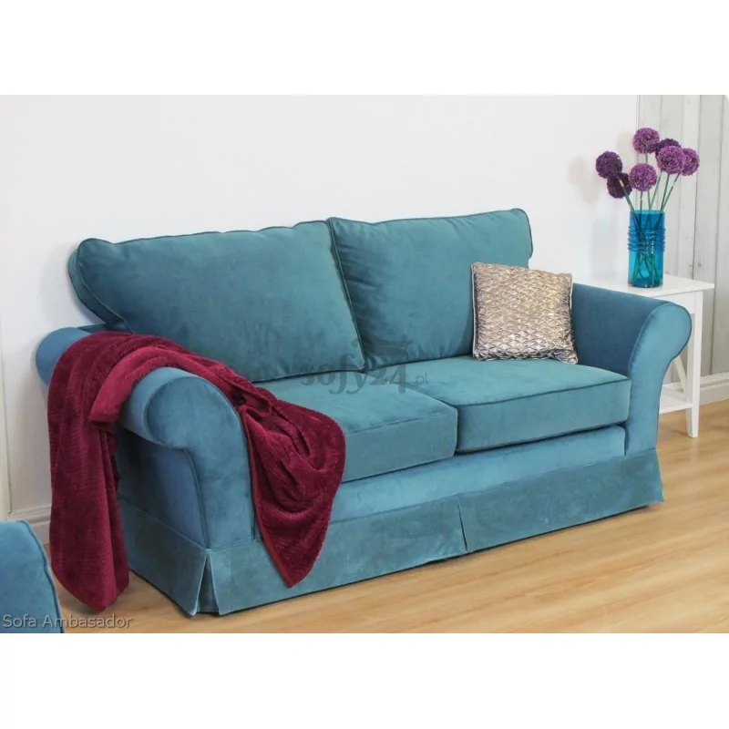 Dwuosobowy wariant modelu Ambasador sprawdzi się w niemal każdym wnętrzu. Ten fakt determinuje głównie jego klasyczna, bezpretensjonalnie elegancka sylwetka i niewielkie rozmiary. Dzięki puszystym poduszkom sofa Ambasador emanuje także komfortem i przytulnością, zachęcając do spędzenia na niej chociaż kilku odprężających chwil. To przede wszystkim doskonały wybór do salonu, ale ten model sprawdzi się również w gabinecie czy sypialni, a także w przestrzeniach komercyjnych. Komfortowe siedzisko, w którym zastosowano sprężyny oraz nowoczesną piankę tapicerską wytrzyma wiele lat intensywnego użytkowania, nie ulegając odkształceniom i nie tracąc nic ze swojej elastyczności. Oparcie wypełnione zaś zostało kulką silikonową oraz frytką piankową, co owocuje jego niezwykłą miękkością i puszystością.