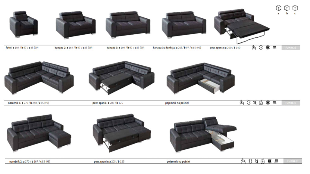 - Kanapa z funkcją spania ( stelaż belgijski, brak pojemnika na pościel )