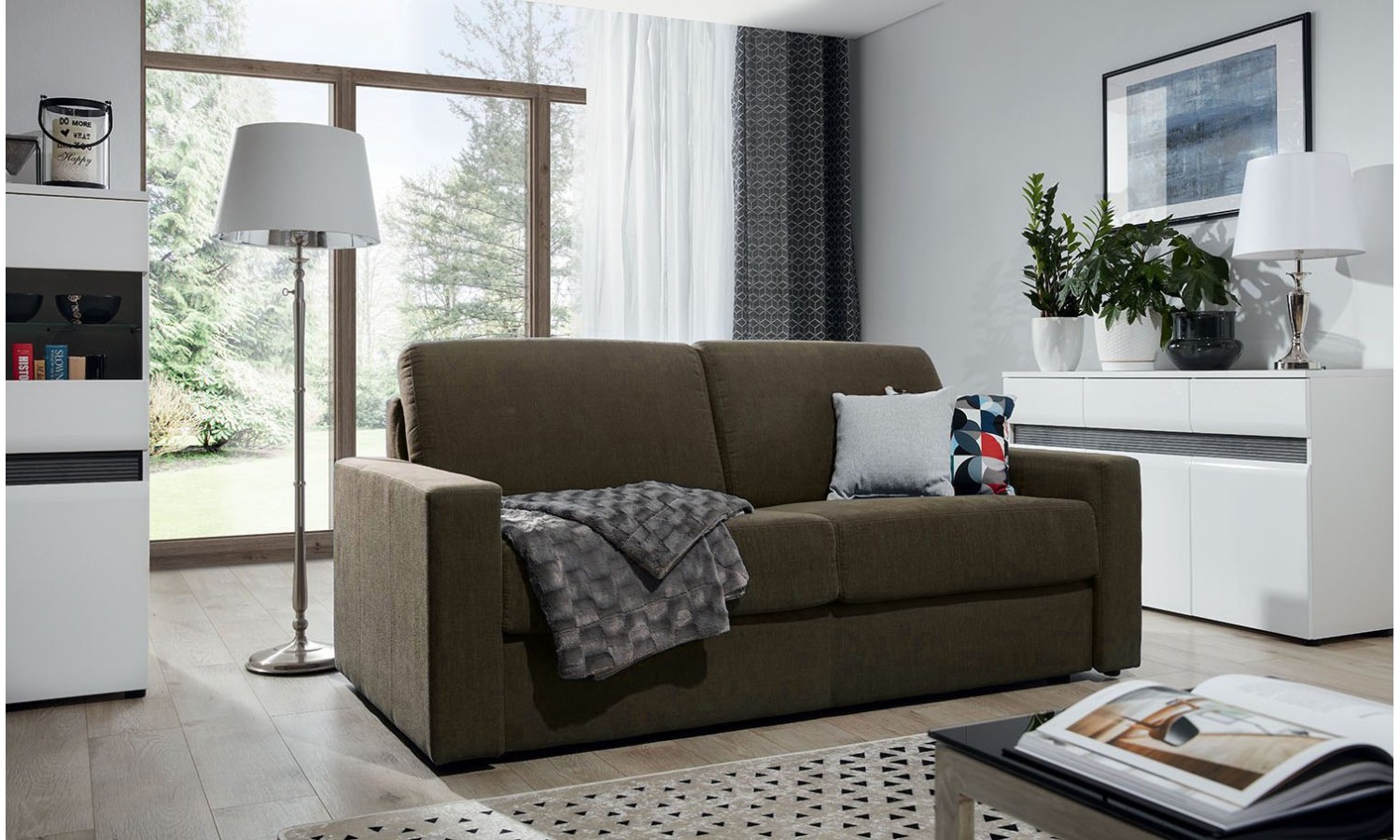 Sofa z systemem włoskim Stilo 207 cm to bardzo funkcjonalny mebel, który sprawdzi się w wielu wnętrzach. Włoski system rozkładania oznacza, że sofę można bardzo łatwo zmienić w wygodne łóżko o powierzchni spania 163 x 195 cm. To rozwiązanie, które idealnie sprawdzi się do codziennego wykorzystania, dlatego mebel jest idealnym wyborem do kawalerek i mniejszych mieszkań. Nada się zarówno do salonu, jak i do pokoju nastolatka czy pokoju gościnnego, oferując wygodę użytkowania, solidność i trwałość. Uniwersalny design kanapy sprawia, że dopasuje się ona do wnętrza w każdym stylu – tym bardziej że składając zamówienie, można wybrać dowolny materiał obiciowy z naszego rozległego wzornika. Przemyślany projekt i staranne wykonanie sprawiają również, że sofa zachwyca komfortem zarówno podczas relaksu, jak i nocnego wypoczynku.