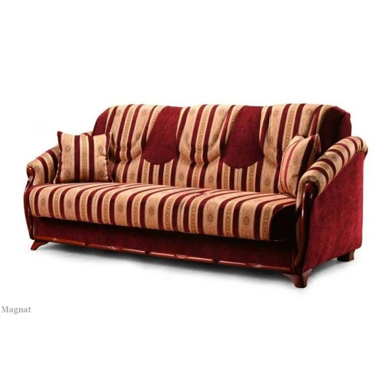 Stylizowana wersalka, luksusowa w naszym salonie? Oczywiście! Magnat udowadnia, że można połączyć piękno stylizowanych mebli wypoczynkowych z ich funkcjonalnością i przede wszystkim wygodą. Projektanci zadbali o to, aby swoją konstrukcją wywoływała zachwyt. Tak oto powstały podłokietniki o niespotykanym kształcie, przechodzącym płynnie z góry na dół. Spójrzmy na drewnianą ramę, która nie tylko przywołuje piękne wspomnienia, ale również szlachetnie zdobi całą wersalkę. Klasyczne, stylizowane nogi są dopełnieniem, a zarazem początkiem decydującym o stabilności. Przeszycia? Nie zawsze muszą układać się romby lub kwadraty. Spójrzmy, jak pięknie i wykwintnie prezentują się kierunki nici na tym meblu wypoczynkowym. Magnat to stylizowana wersalka dla najbardziej wrażliwych na piękno. Kiedy dodamy do tego funkcję spania, Magnat stanie się idealnym i wymarzonym rozwiązaniem salonowym. Ugośćmy bliskich na dłużej, cieszmy się ich obecnością. Mając przy tym pewność, że wyśpią się na naprawdę wygodnej wersalce.