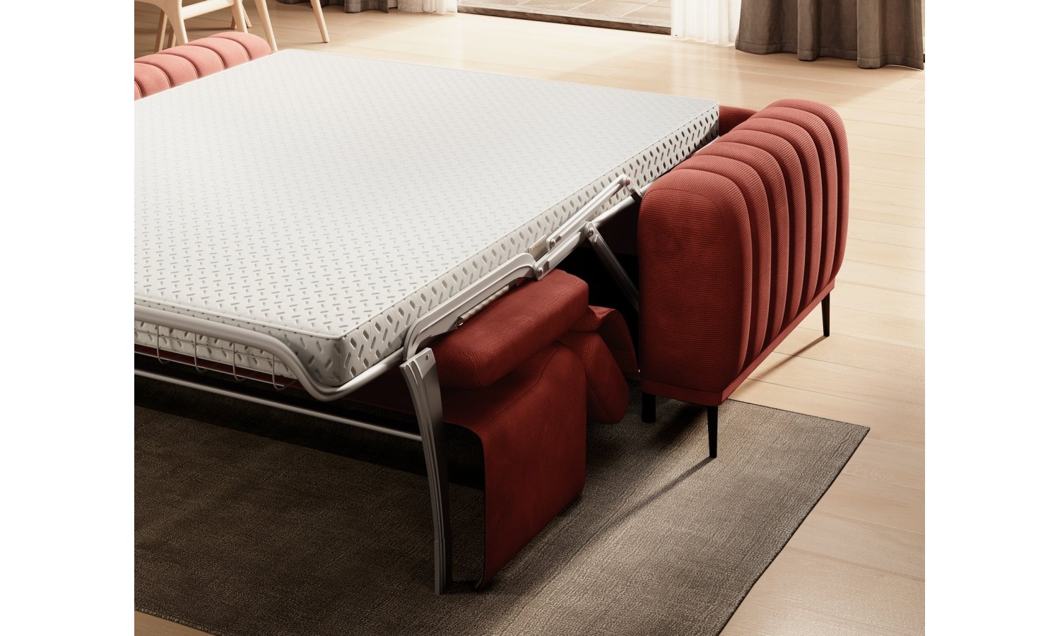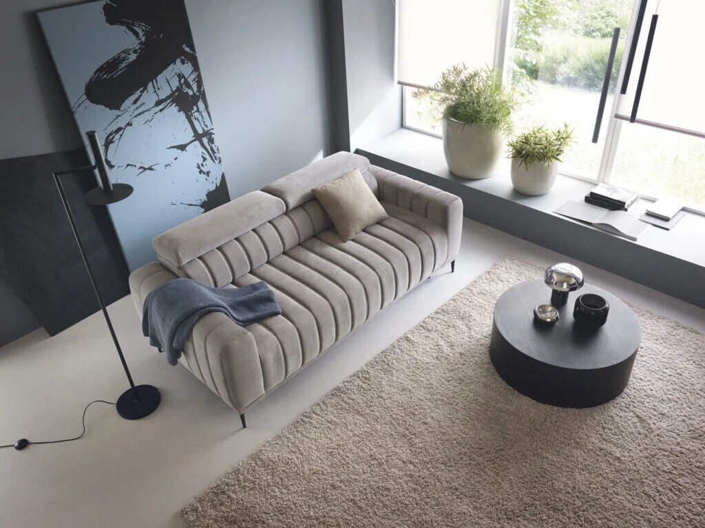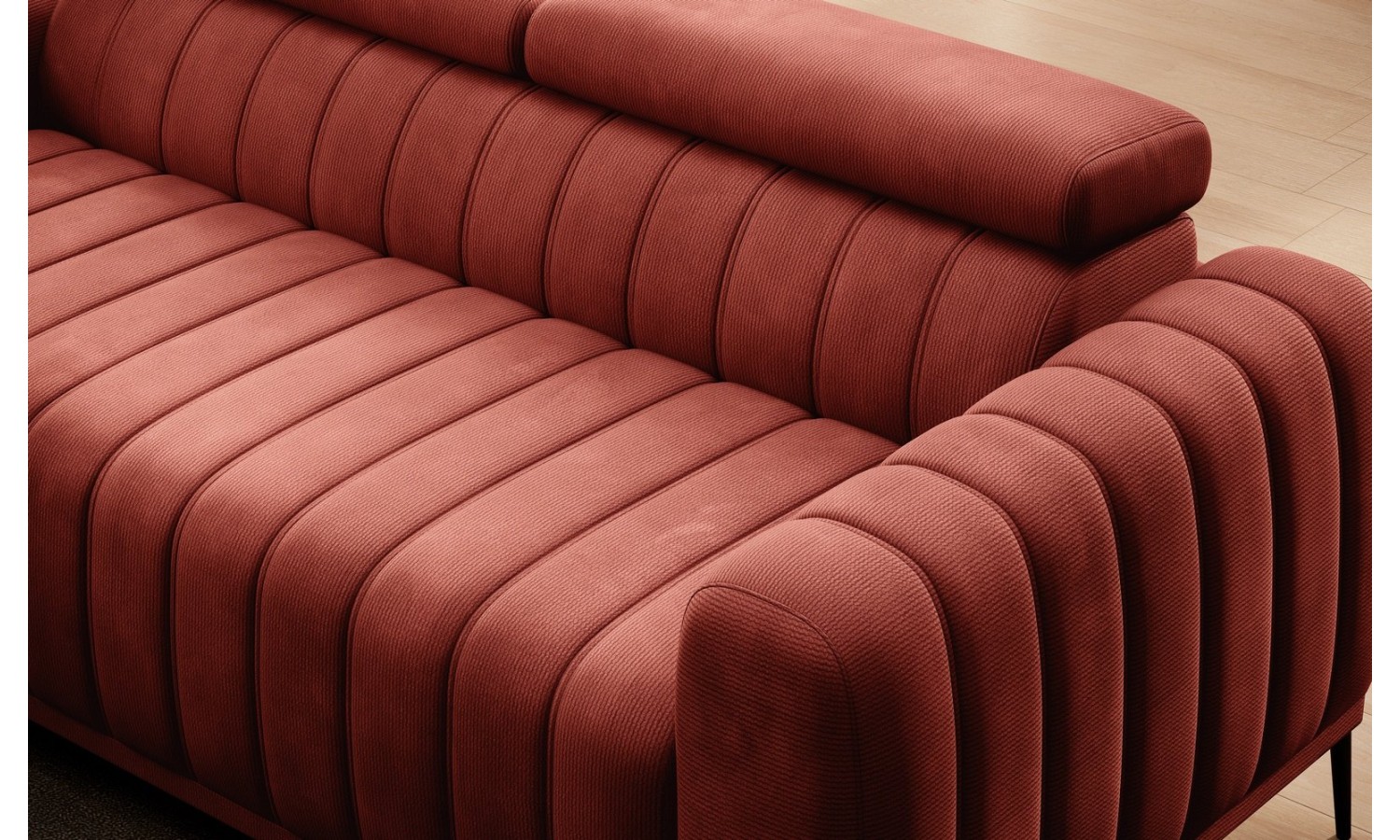 Sofa Tulia to esencja nowoczesnego designu połączonego z funkcjonalnością. Wyposażona w wysokiej jakości włoski stelaż do spania, zapewnia komfortowy wypoczynek zarówno na co dzień, jak i w nocy. Dzięki zastosowaniu piankowego materaca o odpowiedniej twardości, sofa dostarcza wsparcie i wygodę podczas snu. Regulowane zagłówki umożliwiają dostosowanie pozycji do indywidualnych potrzeb, co sprawia, że sofa Tulia jest doskonałym wyborem do każdego wnętrza.