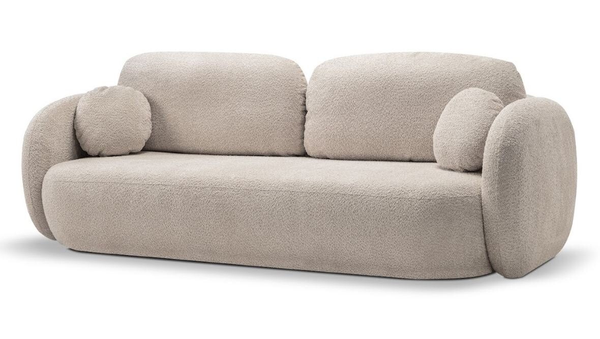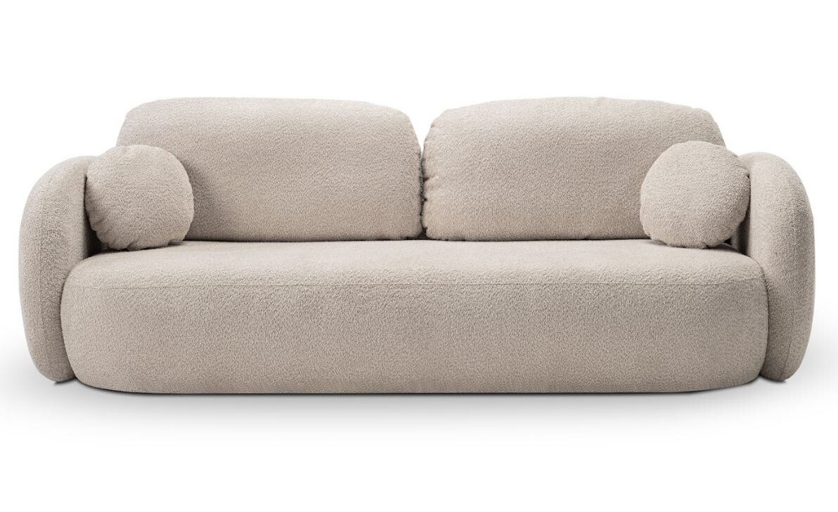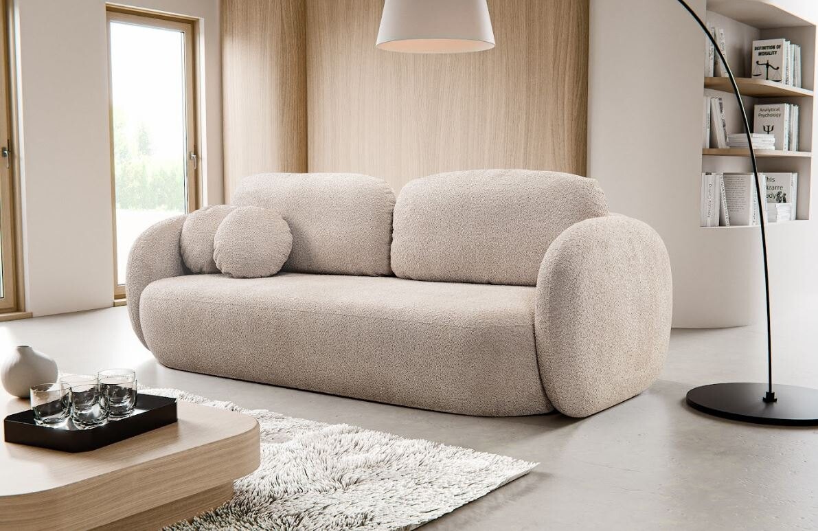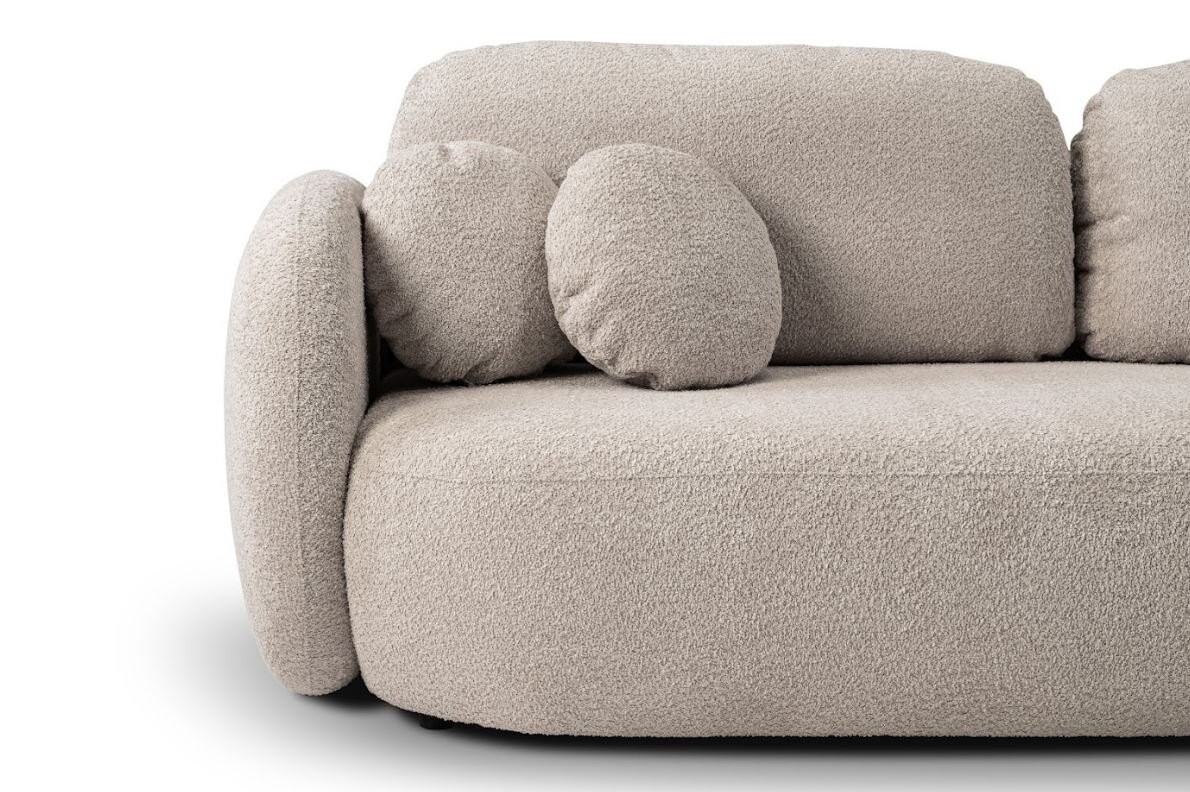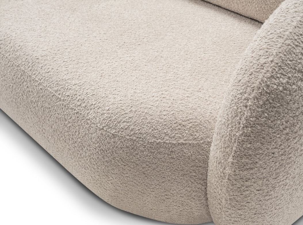 Stylowa sofa Makano o szerokości 238 cm to doskonałe połączenie nowoczesnego designu i funkcjonalności. Tapicerka w jasnym, neutralnym odcieniu beżu nadaje jej eleganckiego i przytulnego wyglądu, który doskonale komponuje się z różnorodnymi aranżacjami wnętrz. Zaokrąglone kształty sofy oraz charakterystyczne, miękkie podłokietniki i oparcia tworzą harmonijną i przyjazną przestrzeń do relaksu.