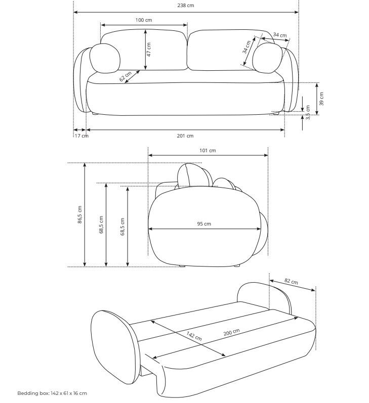 - Sofa posiada funkcję spania DL i pojemnik na pościel
