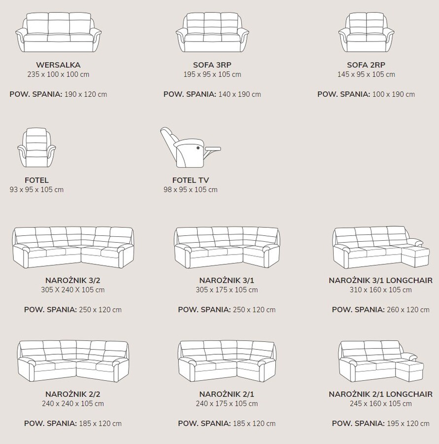Wymiary sofy:
