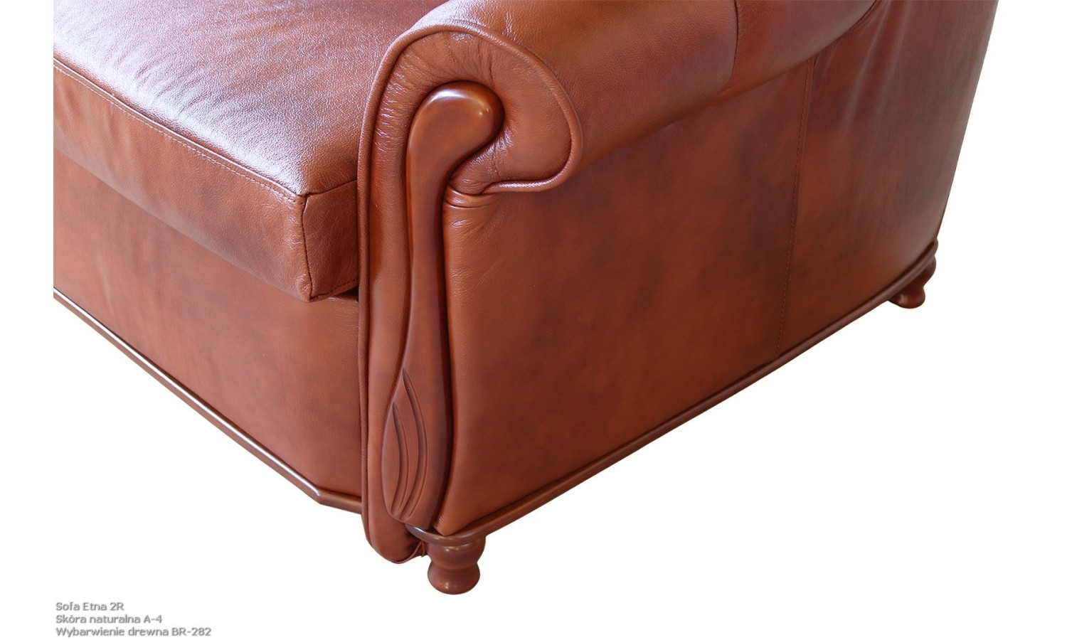 Rozkładana kanapa retro Etna sprawi, że nasze wnętrze rozpromieni się i zyska coś całkowicie nowego. Chociaż sam fakt, że ma funkcję spania, kieruje nas do tego, aby postawić ją w salonie, miejmy na uwadze również to, że idealnie sprawdzi się do naszego stylowego biura lub gabinetu, a nawet poczekalni. Pomocna wszędzie tam, gdzie potrzebujemy wprowadzić luksus i estetykę, podkreślając dane miejsce. Wprowadza świeżość, a jednocześnie jest stylizowana na retro. Taki charakter mebla wypoczynkowego docenią szczególnie koneserzy sztuki. Nieprzeciętna uroda jest zdecydowanie atutem, ale warto wspomnieć o właściwościach relaksujących Etny. Została stworzona z jakościowych materiałów, więc odpoczynek na niej będzie przyjemny. Podczas kiedy na innych sofach niekoniecznie usiądziemy wygodnie i obejrzymy film, retro kanapa pozwoli nam na spędzenie całego wieczoru, bez konieczności zmiany pozycji, a także bez bólu pleców. Wygodne siedzisko, wysokie oparcie i wyprofilowane podłokietniki to gwarancja satysfakcji i niezwykłego, najwyższego komfortu. Taka gwarancja ucieszy wszystkich, którzy chcieliby więcej czasu poświęcać na relaks.