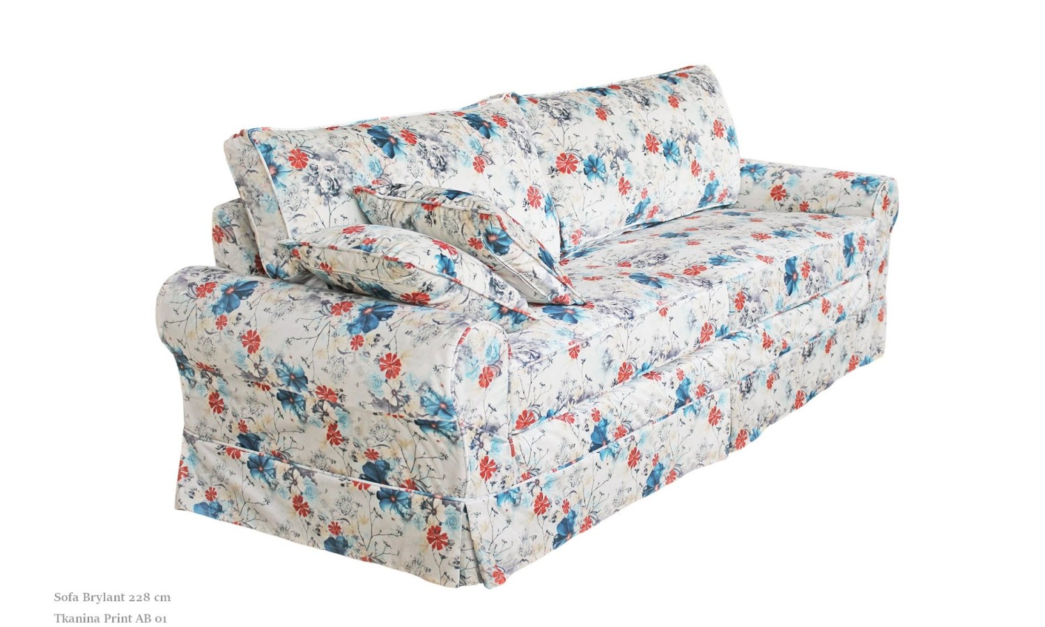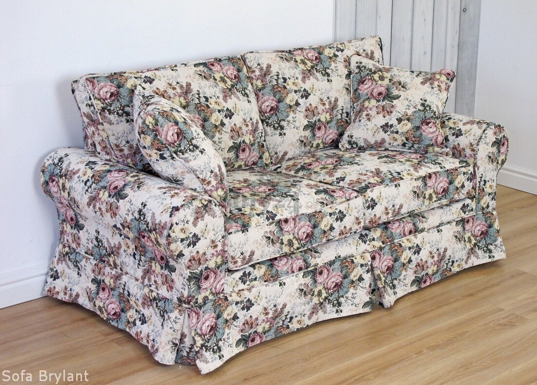 Sofa w czerwone kwiaty Brylant 208 cm z funkcją spania