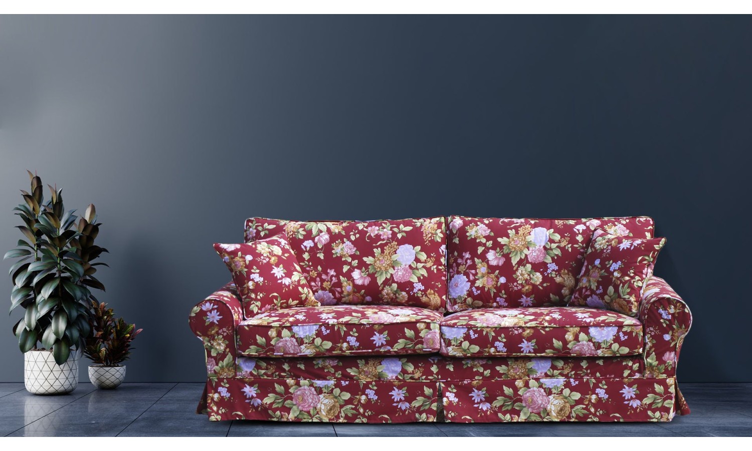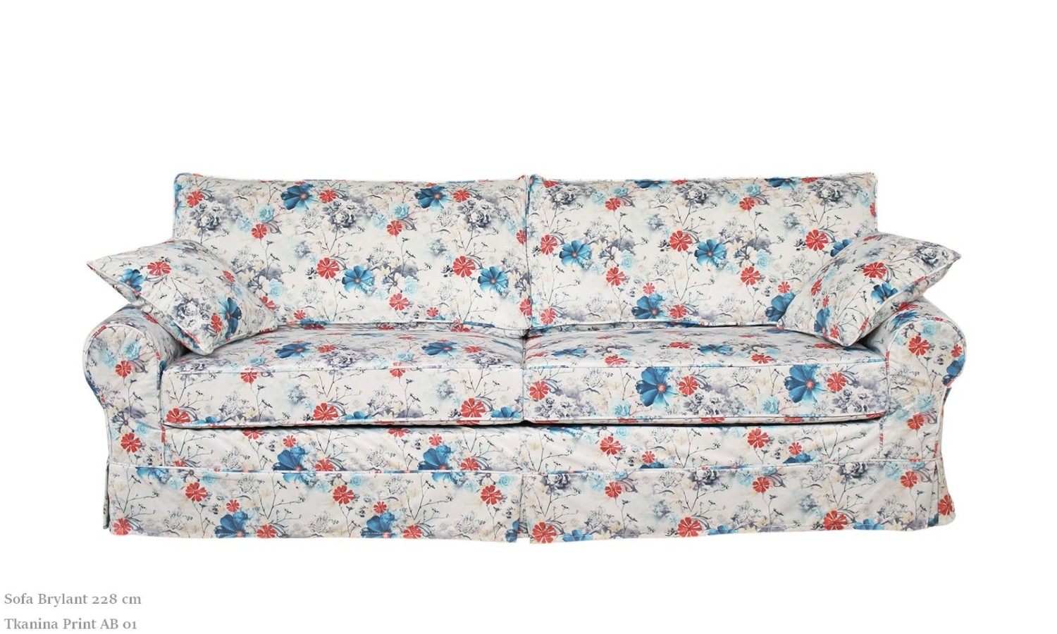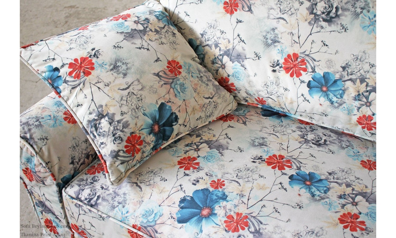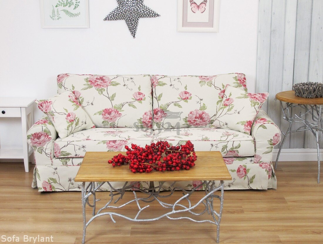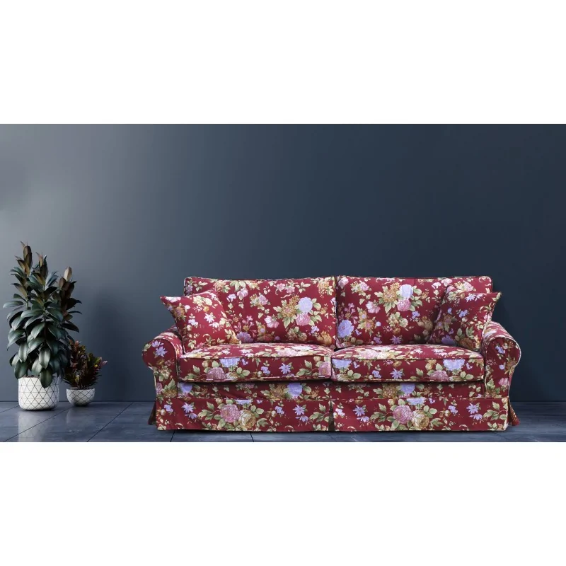 Sofa Brylant 208 cm w intensywnej czerwieni, ozdobiona bujnym wzorem kwiatowym, jest zarówno elegancka, jak i praktyczna. Kwiatowe motywy sprawiają, że sofa staje się wyrazistym elementem dekoracyjnym, który potrafi przyciągnąć wzrok i dodać charakteru każdemu wnętrzu.