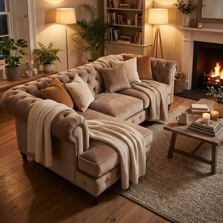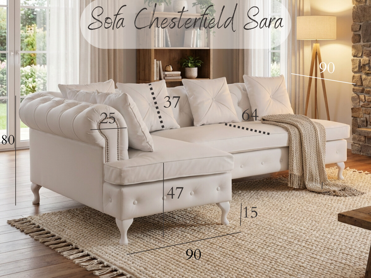 Beżowa sofa Sara 200 cm w stylu chesterfield