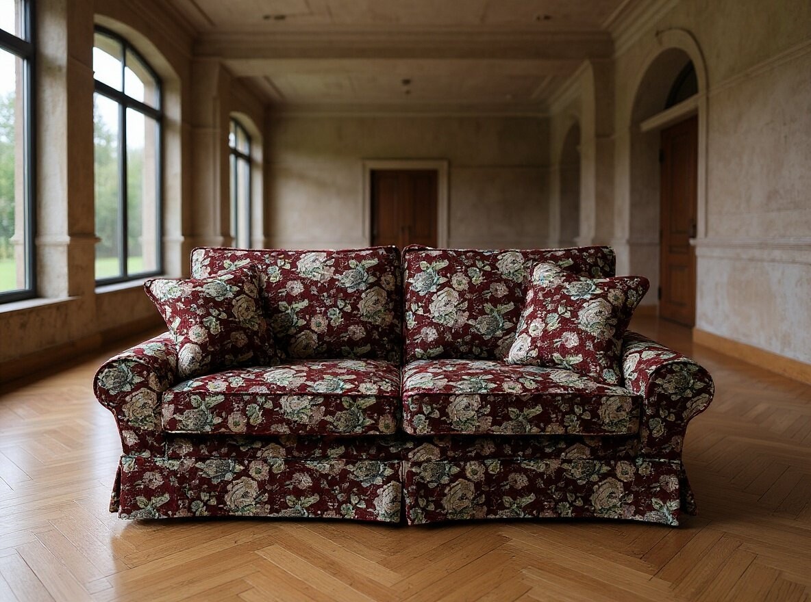Sofa na zdjęciach w tkaninie "Róża Benti" - wymaga dopłaty