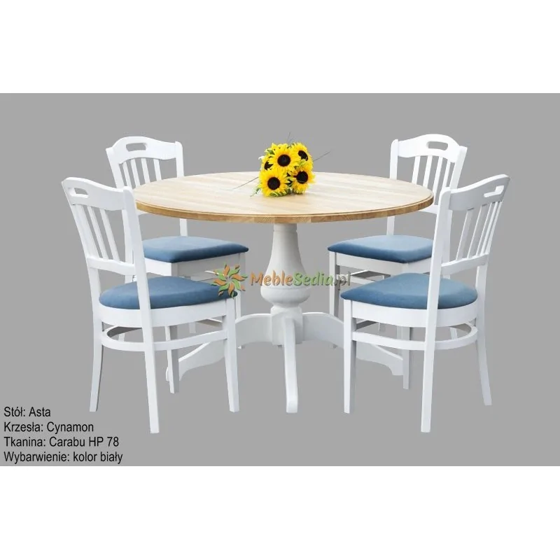 Model Asta to piękny i bardzo funkcjonalny mebel, który łączy w sobie dekoracyjność z zastosowaniem praktycznym. Stół doskonale spełni rolę stolika kawowego ustawionego w rogu pokoju czy na przydomowym patio, jak i głównego stołu w salonie. Okrągły blat zapewnia doskonały kontakt osobom siedzącym przy stole, dlatego jest to doskonały mebel rekreacyjny, przeznaczony do wspólnych rodzinnych gier czy spotkań z przyjaciółmi przy herbacie. Na uwagę zasługuje piękny dębowy blat charakteryzujący się naturalną barwą i szlachetną trwałością drewna. Na życzenie kolor blatu może zostać dopasowany do Twojego gustu czy do innych mebli w pomieszczeniu, w których chcesz go wykorzystać. Drewno zabezpieczane jest specjalnym olejem lnianym, dzięki czemu uzyskuje piękną lekko połyskującą powierzchnię i jest odporne na plamienie. Efektowny i zarazem stylowy dodatek stanowi bukowa podstawa w formie pojedynczej toczonej nogi na potrójnym stojaku. Kolor nogi możesz indywidualnie dopasować do aranżacji wnętrza. Stół dębowy na jednej nodze Asta jest bardzo prosty w montażu, a przykręcana noga pozwala na jego rozłożenie i wygodne przenoszenie.