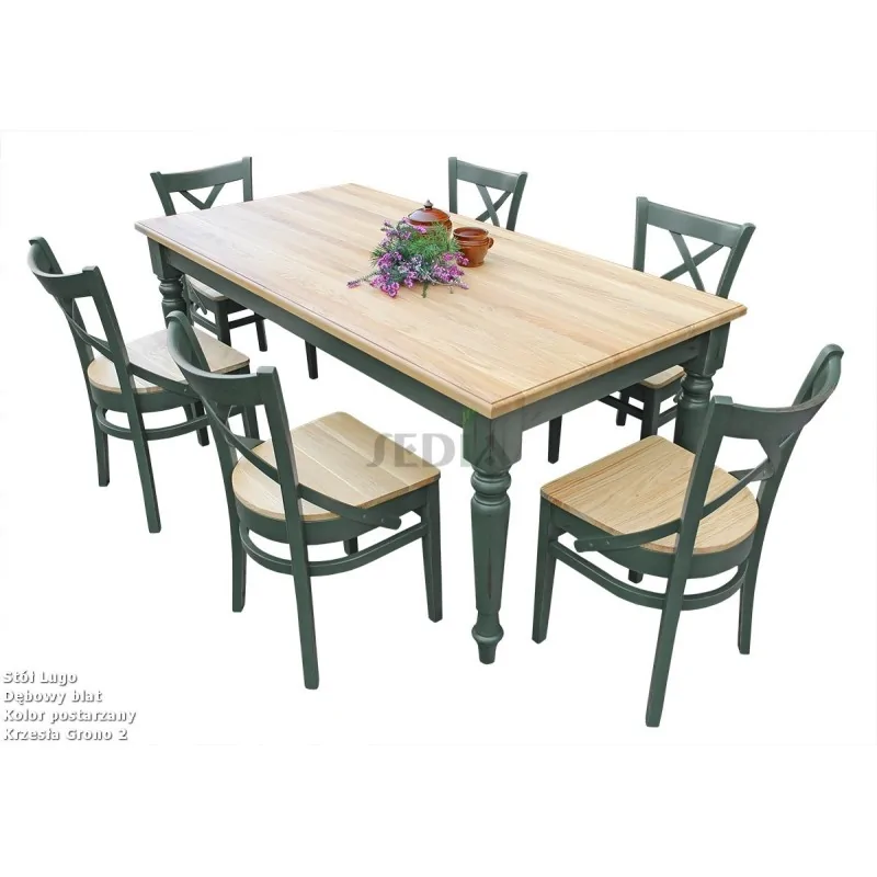 Na zdjęciu: Stół Lugo 170x90 cm - kolor ramy stołu wybarwiony do próbki klienta - kolor postarzany.