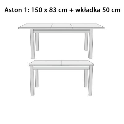 Aston to solidny stół prostokątny, który z powodzeniem może odnaleźć się, jako dodatek do funkcjonalnej kuchni, w której od czasu do czasu pija się kawę lub zjada poranne śniadanie. To również stół, który doskonale zda egzamin w nowoczesnym salonie z dodatkiem nieco bardziej wykwintnych krzeseł podkreślających jego atuty. Prosta geometryczna forma pozwala na wiele stylizacji i jest też wyjątkowo stabilna z uwagi na rozmieszczenie i masywność nóg. W pozycji rozłożonej blat może osiągać długość nawet trzech metrów, jeśli wybierzesz największą, dwumetrową wersję z dwoma wkładami. W takiej postaci jest to idealny stół do dużej jadalni, w której od czasu do czasu urządzasz spotkania w gronie rodziny czy przyjaciół.