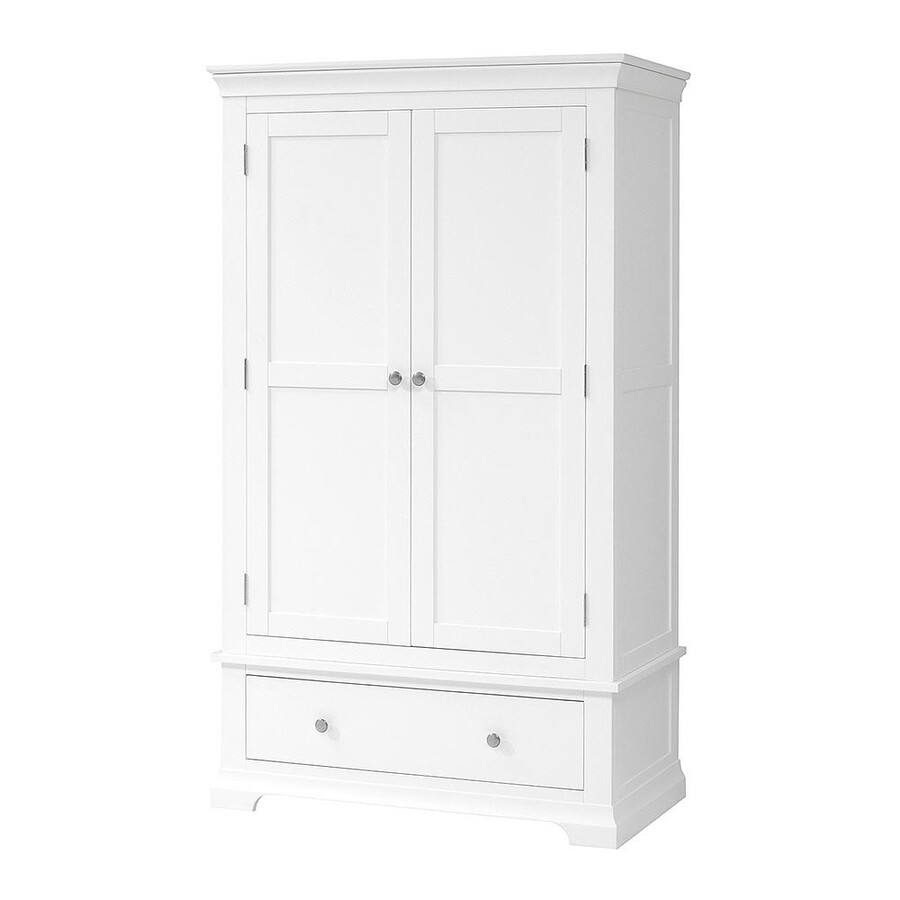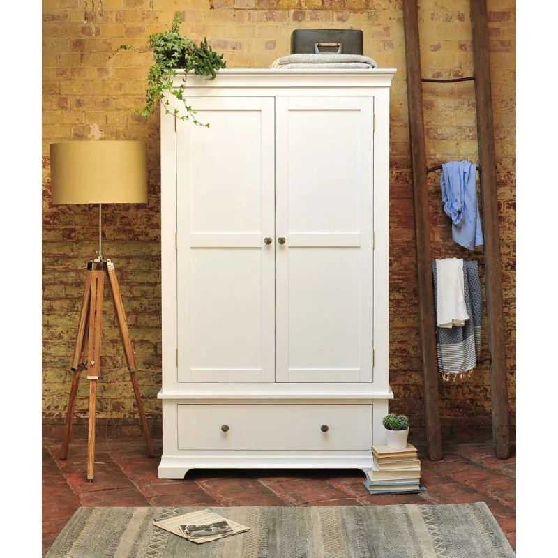 Szafa w stylu prowansalskim Bonita to stylowa kompozycja przeznaczona do sypialni lub przedpokoju, gdzie zaspokoi potrzebę przechowywania odzieży wymagającej wieszaków. Mebel cechuje się typowymi rozmiarami, oferując wnętrze o szerokości dostosowanej do pary drzwi, dzięki czemu jest w stanie pomieścić nawet sporą ilość ubrań. Dopełnieniem górnej części na wieszaki jest duża dolna szuflada, która może być miejscem na tekstylia, torby podróżne, szaliki, a nawet obuwie, jeśli mebel będzie wyposażeniem przedpokoju. Szafa w stylu prowansalskim Bonita jest doskonałym meblem z litego drewna, stworzonym w stylu nawiązującym do klimatów dawnej Prowansji. Styl podkreśla zarówno biały kolor mebla, jak i charakterystyczne wykończenia w formie szerokich wysuniętych na zewnętrz zwieńczeń podstawy i góry modelu. Atutem jest też prosta forma i brak wyszukanych dekoracji, dzięki czemu dopasuje się on również do bardziej nowoczesnych aranżacji wnętrz. Za uniwersalną można też uznać biel harmonizującą z każdą kolorystyką wnętrza. Piękna i zarazem bardzo stylowa szafa w stylu prowansalskim Bonita to mebel, który zaakcentuje klimat retro w wystroju wnętrz zapewniając zarazem praktyczny i bardzo funkcjonalny schowek na odzież. To kompozycja, które będzie współistnieć z wyposażeniem sypialni, idealnie wpasowując się w jej wystrój.
